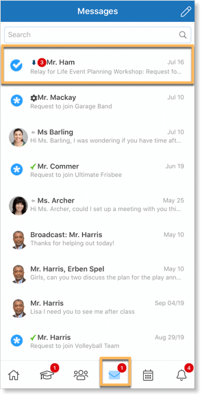 To view the request, navigate to your mailbox by clicking the envelope icon in your mobile Navigation Bar.