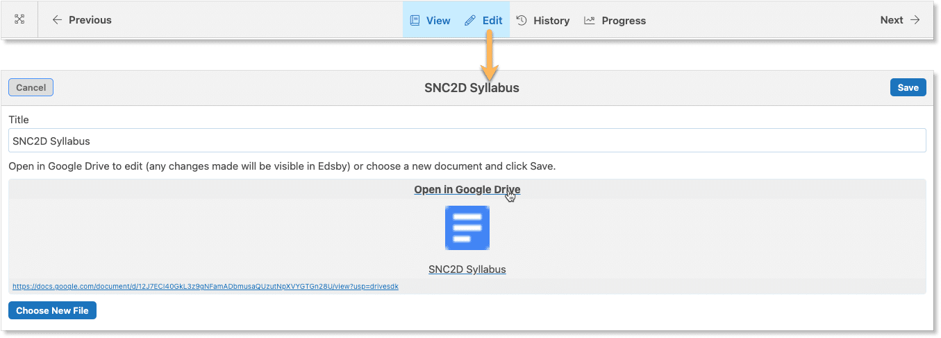 When linked to Edsby, any changes made to the document in its original location will automatically sync and update within Edsby.