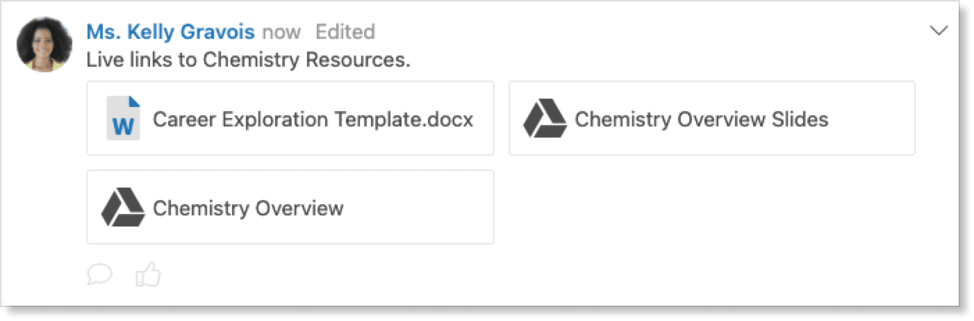 Live Google Drive or Microsoft OneDrive files can be linked to the Content Builder in Classes and Groups.