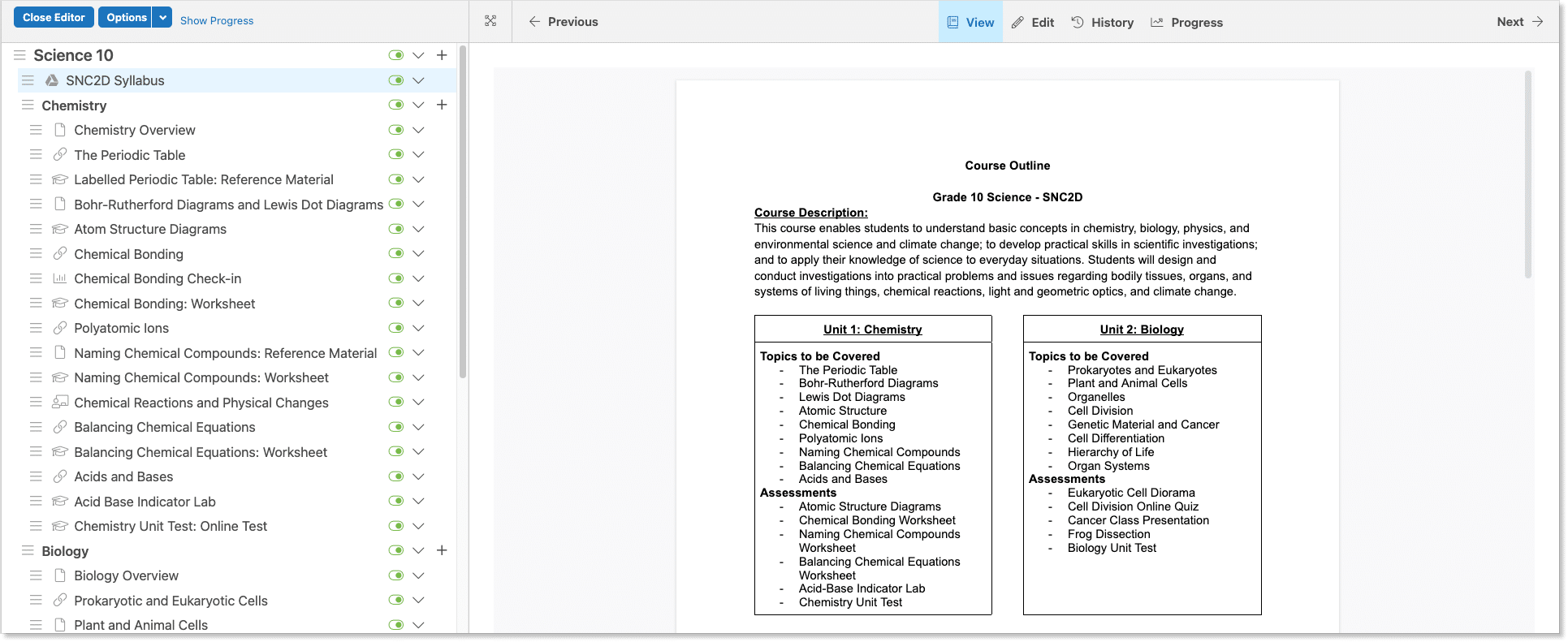 The document is embedded within the Content Builder. As always, if teachers make changes to the document in its original location, the updated content is available within Edsby.