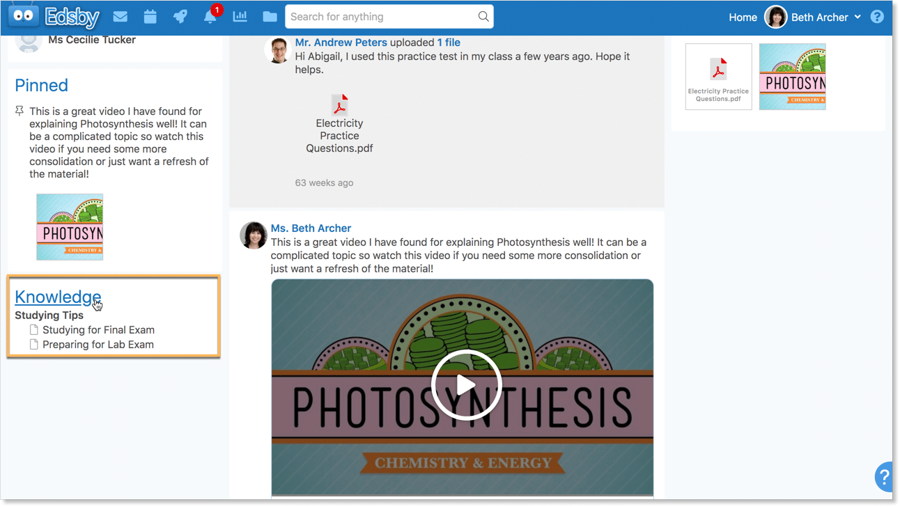The Group’s Knowledge Base automatically defaults to be called Knowledge. However, teachers can change this at any point. Click Knowledge.