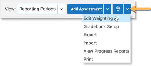 Edit Weighting is accessed from the Gradebook. Edit Weighting is only available to the teachers of a class.
