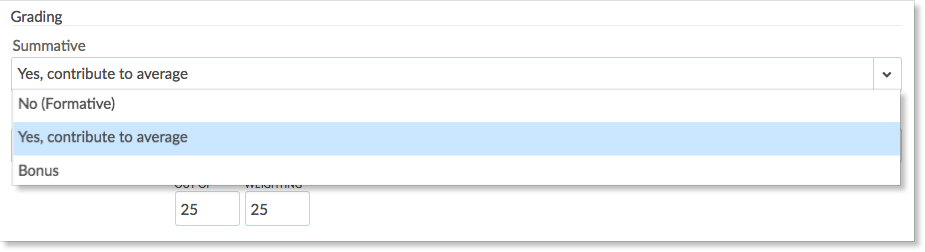 Assessments fall into two broad categories: summative assessments that are used in the calculation of the overall average and formative assessments that are not part of a student’s overall average. When teachers create a summative assessment, they assign weighting points and Edsby uses this information to calculate each student’s overall average.