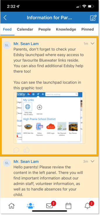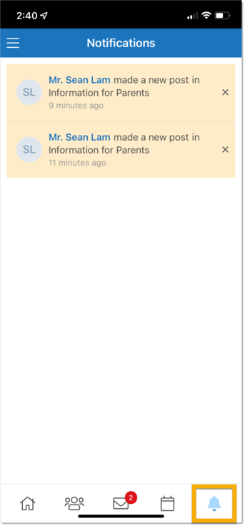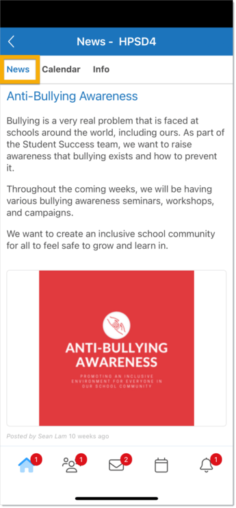 Parents will be brought to the News Feed of the school where posts made by members of the school can be viewed.