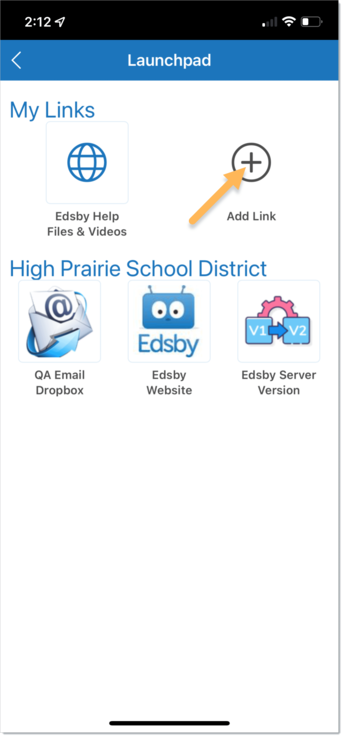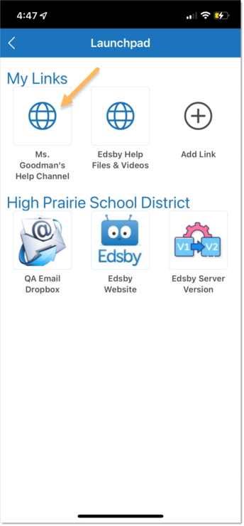 Parents can also add links to the Launchpad to websites or applications that they would like quick access to. In this example, Delores Abram would like to add a quick link to her child’s Science teacher’s YouTube help channel. Click the Add Link button in the Launchpad.