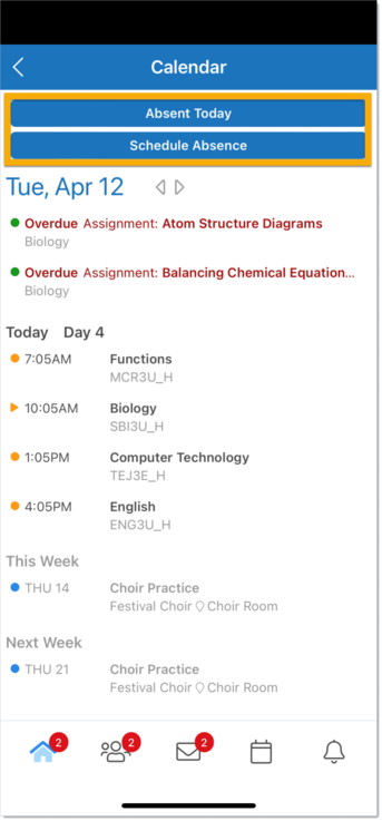 To plan an absence for a child, select either Absent Today or Schedule Absence from the top of the screen.