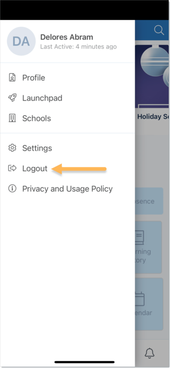 Parents can log out of Edsby from the Home Screen drop-down menu by clicking Logout.