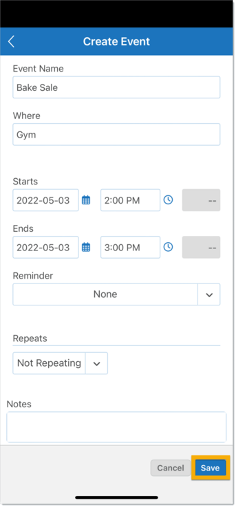The event will be added to the parent’s calendar and it will only be visible to them.