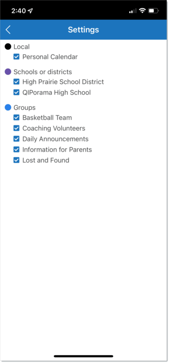 Parents can select certain groups or classes to be displayed on the Personal Calendar.