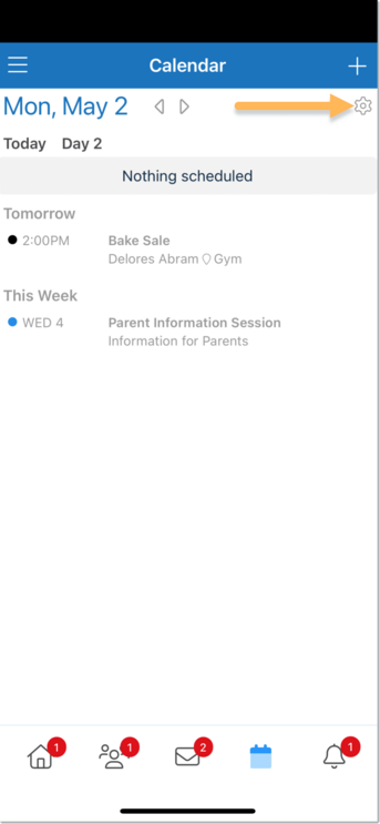 Click the gear icon in the top right corner of the screen to select what is displayed on the calendar.