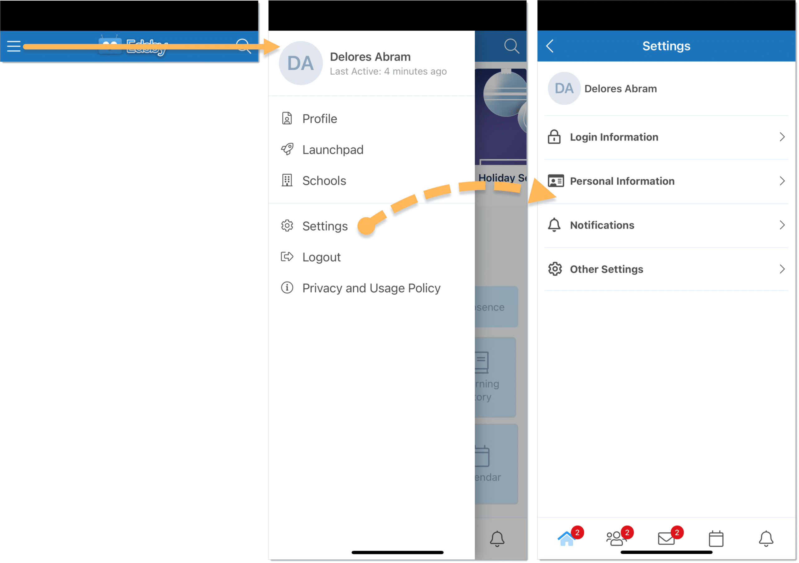 Jump to Key Sections in Edsby Mobile AppJump to a Section