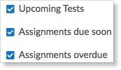 Upcoming Tests, Assignments Due Soon, and Assignments Overdue