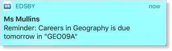 When an assignment is due soon, students will be notified in whichever way is specified in their Notification Settings. The notification will include the name of the assignment, when it is due, and the lass in which it belongs to.