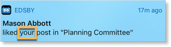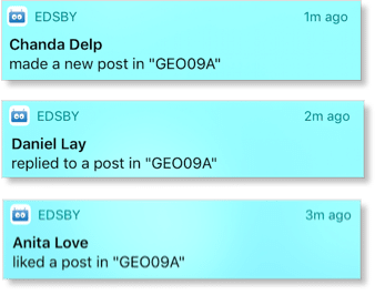 When a post is made in the Group Feed or a post was liked or replied to, users will be notified in whichever way is specified in their Notification Settings. These notifications look very similar to those they would receive for selecting this option in a Class.