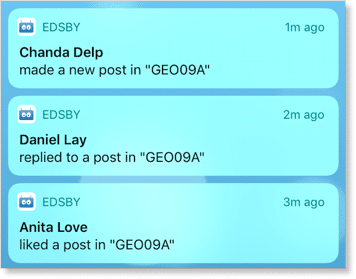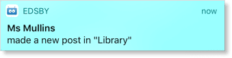 If parents choose to receive Mobile Notifications, a new post in the Class Feed will cause a notification to be sent to any mobile device they have their Edsby account connected to.