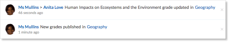 - Teachers commenting on or updating a child’s grades (if the teacher has chosen to share them)