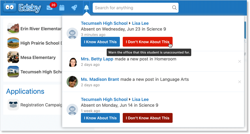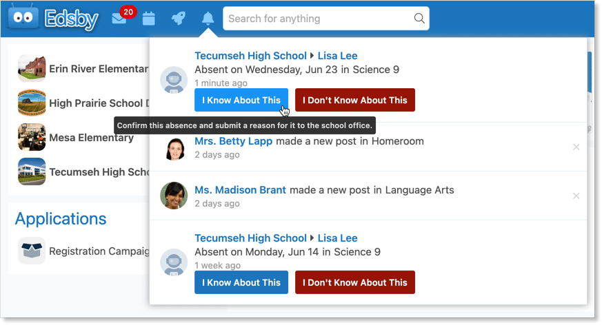 Edsby enables parents to inform their children’s school of an absence quickly and easily right from their mobile device.