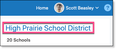 In Edsby, navigate to the District or School you wish to configure the Turnitin LTI Tool at. In this case it is High Prairie School District.