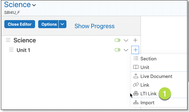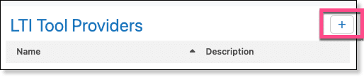 Scroll to the LTI Tool Providers section. Click + to open the New LTI form.